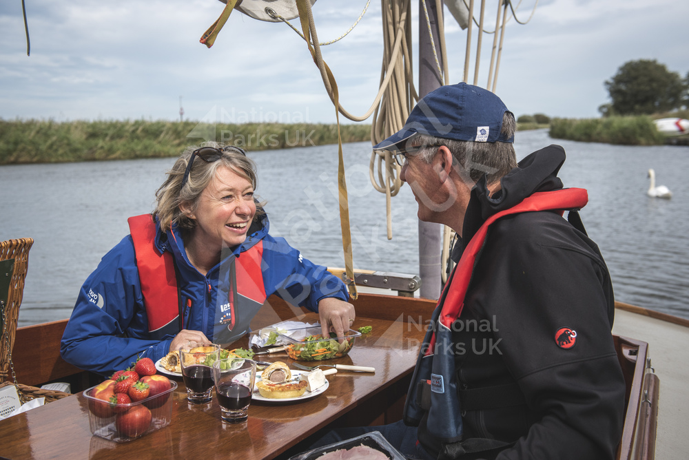 Tags: Water, Sky, Table, Tableware, Plant, Cloud, Tree, Hat, Jacket, Lake, Outdoor recreation, Leisure, Plate, Recreation, Food, Life jacket, Ship, Boat, Sailing