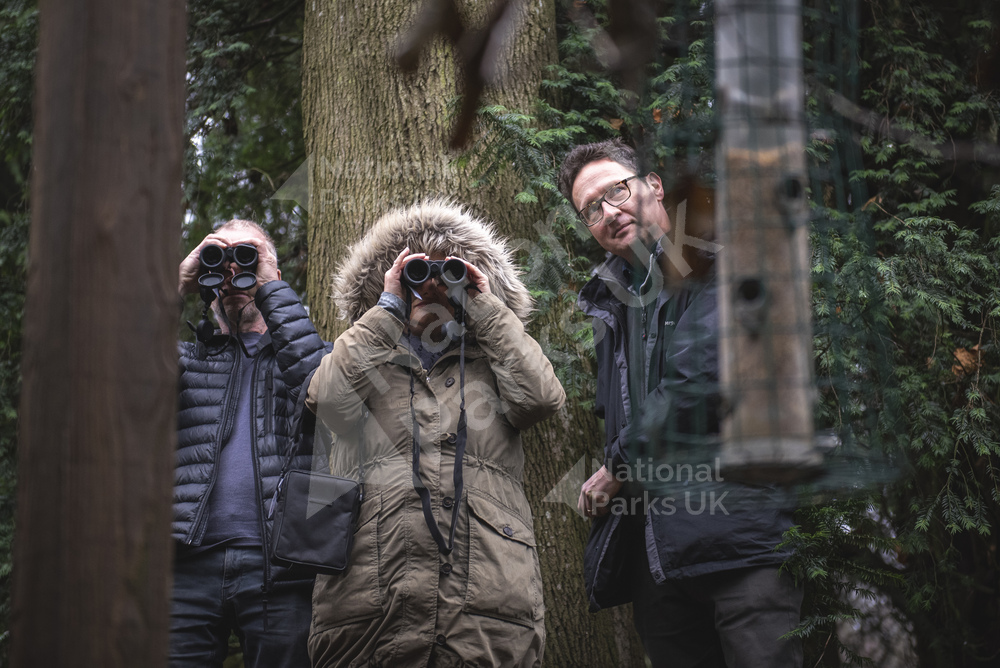 Tags: Coat, Jacket, Tree, Fur clothing, Forest, Woodland, Wildlife, People in nature, Binoculars