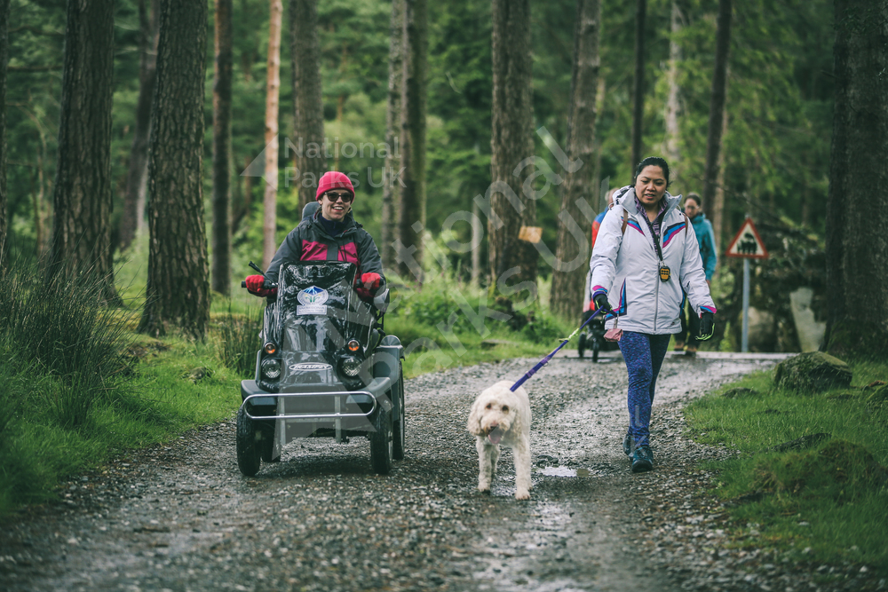 Mobility tramper on Lôn Gwyrfai, a multi-use trail that leads from Beddgelert to Rhyd Ddu in Eryri (Snowdonia).
